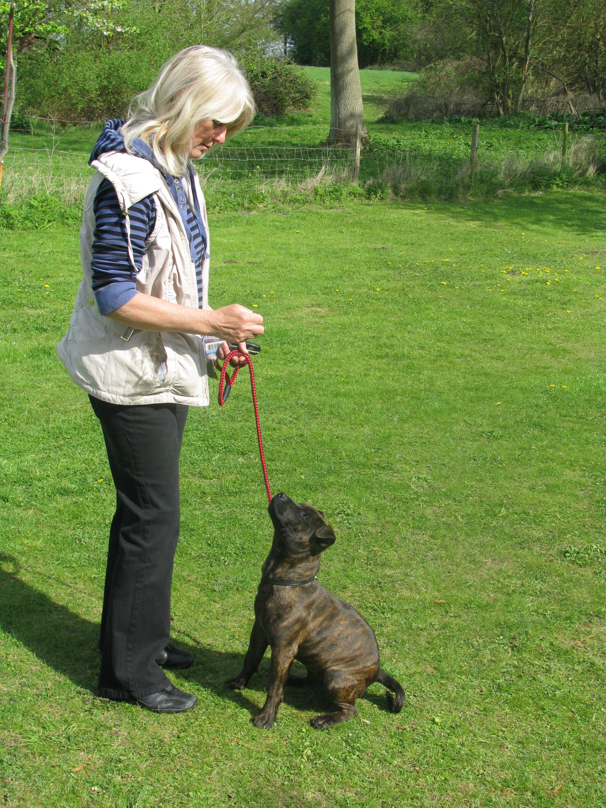 We have started off teaching them to sit and watch, go down, lead work and how to stop them jumping up, as you can