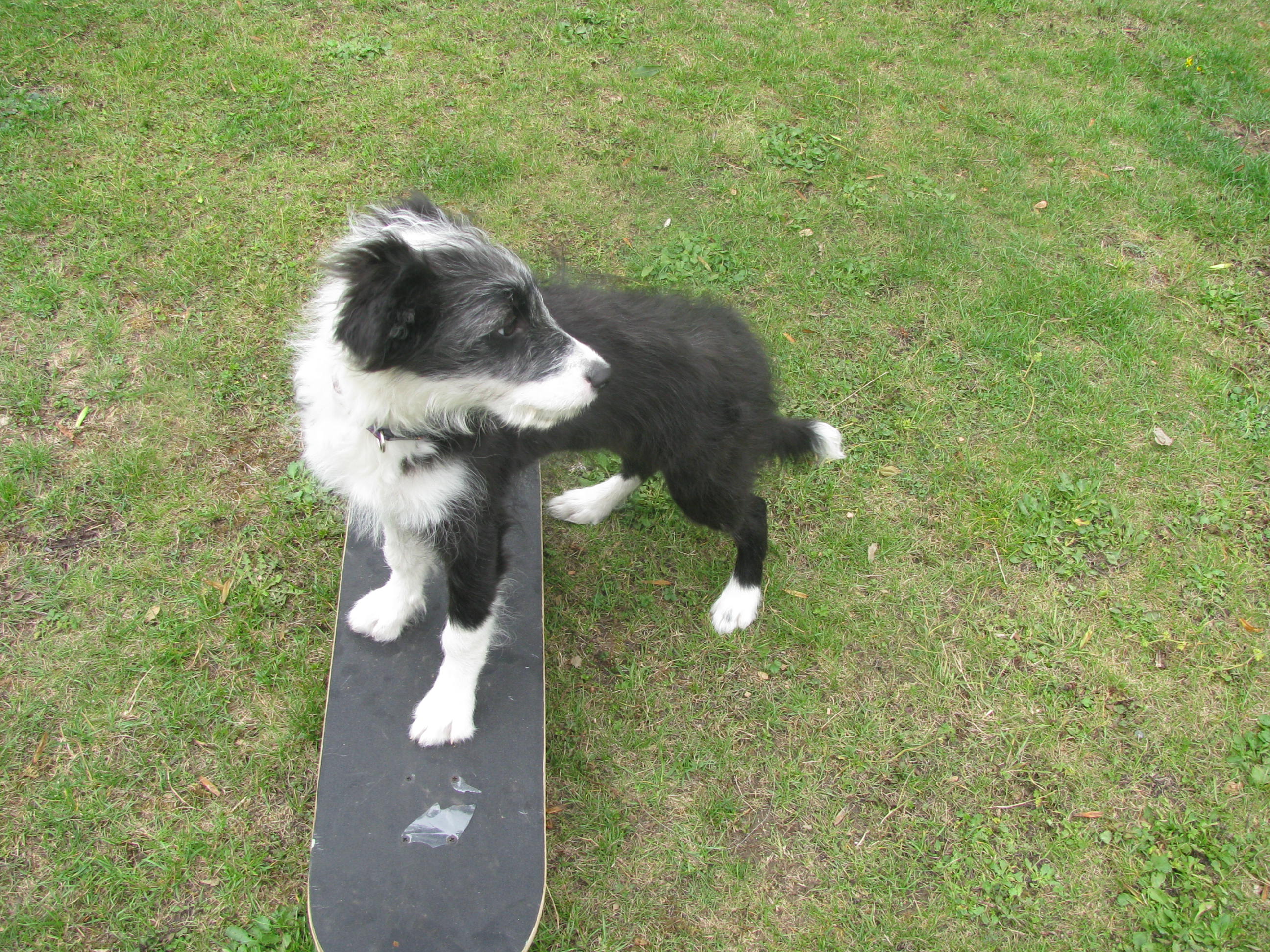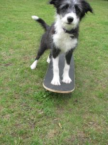 Training wise we have been doing a little of everything that she may need in life, recently she has been getting a little confused and offers up all her tricks to find the right one! So far I have taught her the baby beginning’s of sit, down, heel, come, high-five, stays, retrieve, roll over, and watch, plus she is starting to learn to ride a skate board! Confusion is a part of training progress and a very useful one too! Confusion means that the dog is trying hard to please and simply throwing everything in the pot to try to find the right one! I always praise whatever Betty gives me, it is all good and by encouraging her efforts she stays willing, the most precious gift any dog can give!