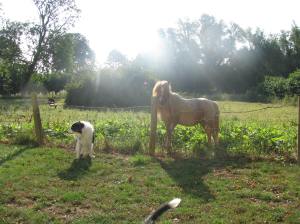 Those of you reading this that have been to see me at Barbary have met our new visitor Magic the pony in the front paddock. Magic belongs to Adam and Ian of Barnards Bridge, they rehomed Magic a year or so ago from a girl who had rescued him from the gypsy’s. Magic had learnt not to trust people and is a troubled pony, only small so you can imagine he would be easy to bully by badly intentioned people! Magic had come on a lot with Adam and Ian’s care and love, but not being horsey they didn’t know how to move him on to the next level and asked me to help. I am enjoying having Magic to stay, it is great to see a pony in the paddock, it brings the outside to life!Luckily he seems completely at ease with dogs and is happy for Pie and Betty to run round him! I will keep you posted on Magic’s progress 🙂